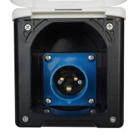 Die Steckdose verfügt über eine magnetische Klappe, die einen sicheren Verschluss gewährleistet und das Eindringen von Schmutz und Feuchtigkeit verhindert. Dank des CEE-männlichen Anschlusses ist die Einbausteckdose kompatibel mit allen gängigen CEE-Steckern.